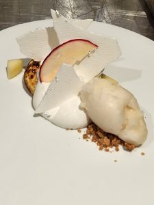 今回デザートの考案を任せて頂き、試作を重ねて完成したのは「真っ白なりんごのデセール」🍎