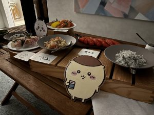 この日はちいかわが好きなお二人のお茶漬けビュッフェでスタッフの帽子につけていたちいかわを飾りで飾っていました!