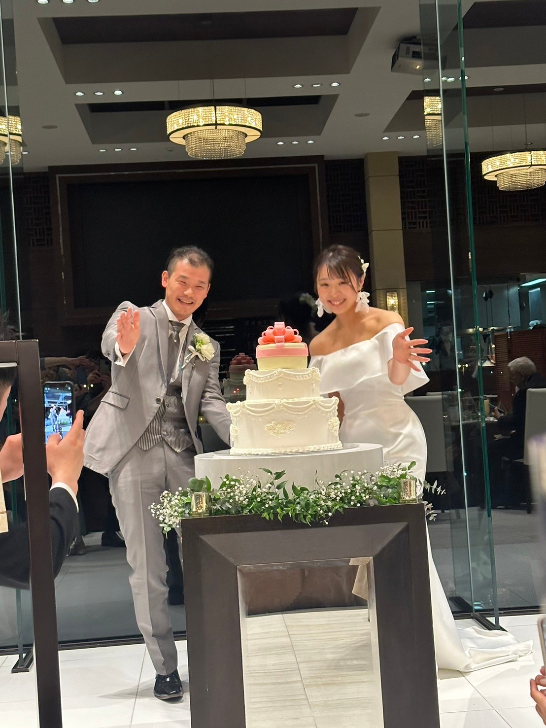 夫もパティシエで自分達の結婚式では二人でウェディングケーキを作って家族にお花を乗せてもらいました💠