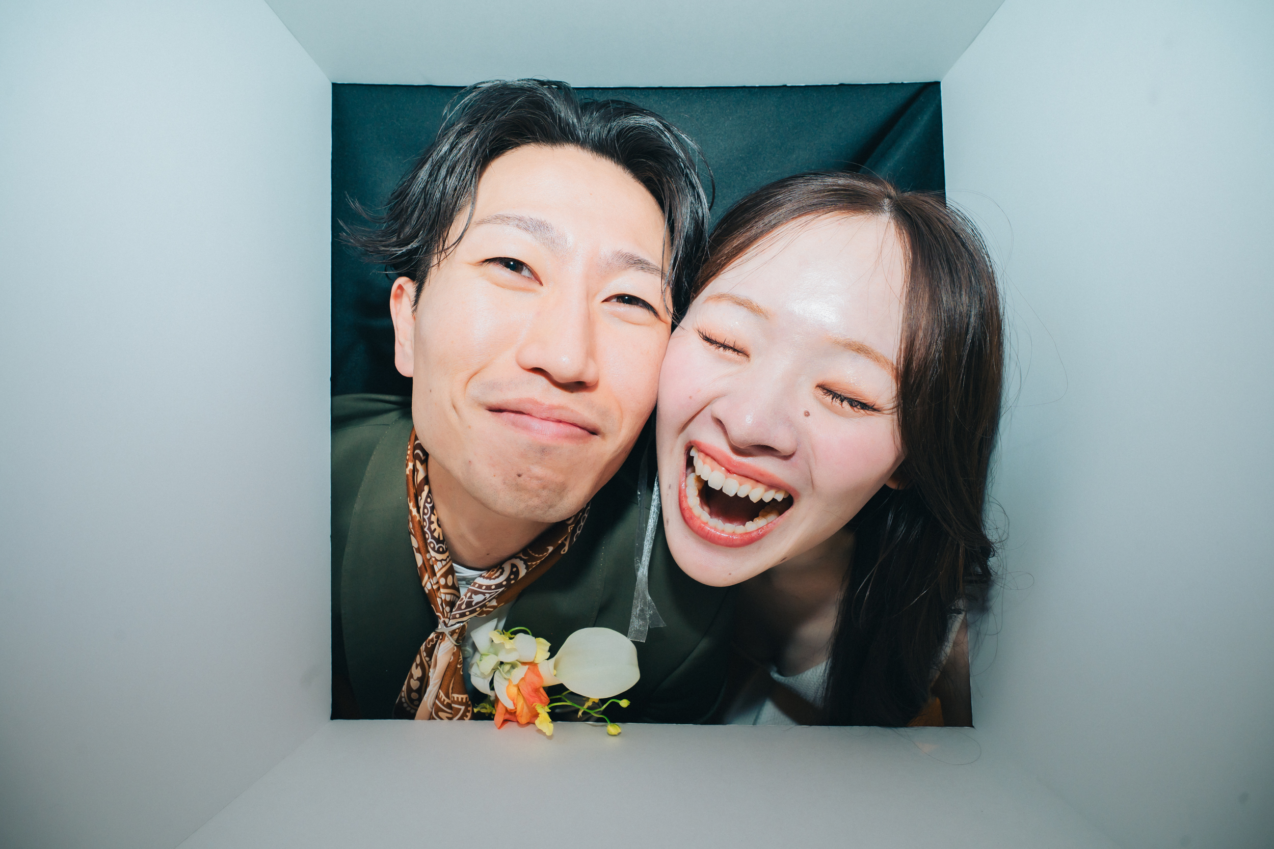 待合にてゲストの方に箱に入っていただき