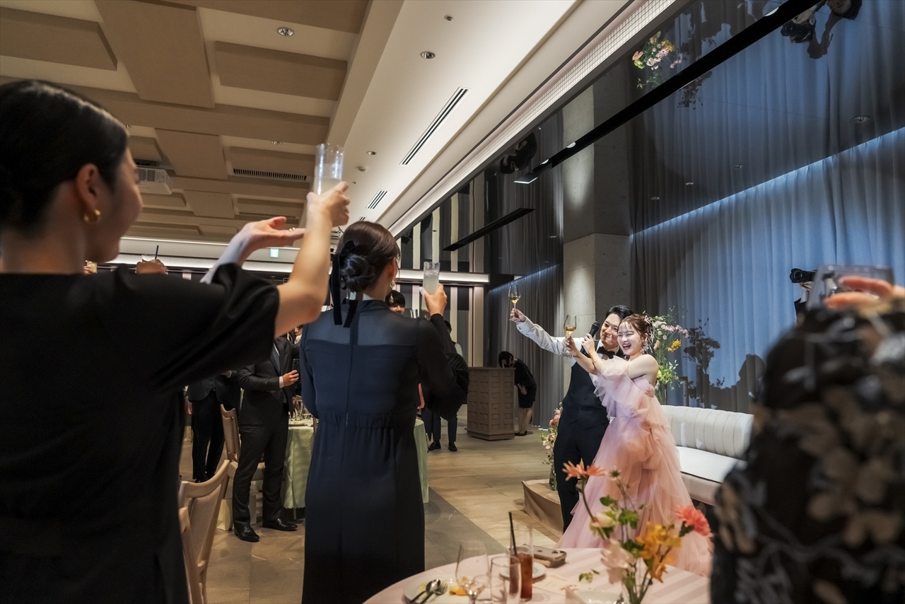 夢だった全員と乾杯しながら門出するおふたりの姿を見て